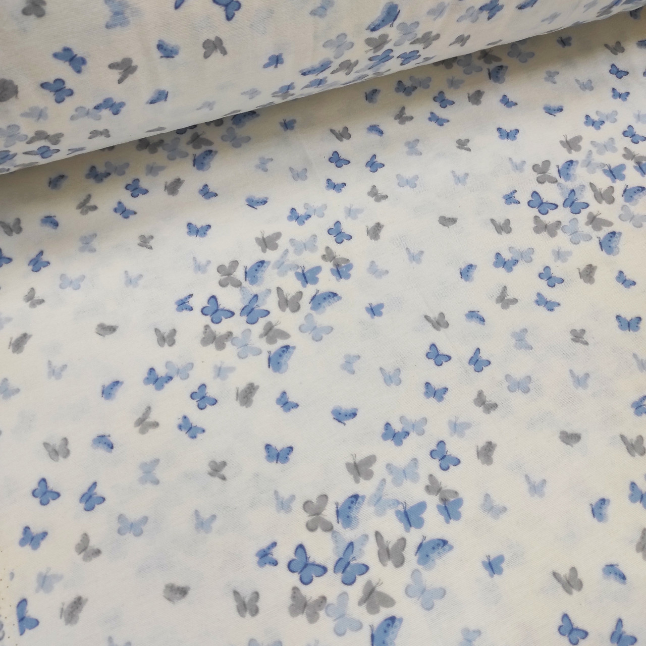 ОТРЕЗ (0,55 * 2,4 м) Фланелева тканина дрібні метелики сіро-блакитні,W (шир. 2,4 м) (FL-W-0116)