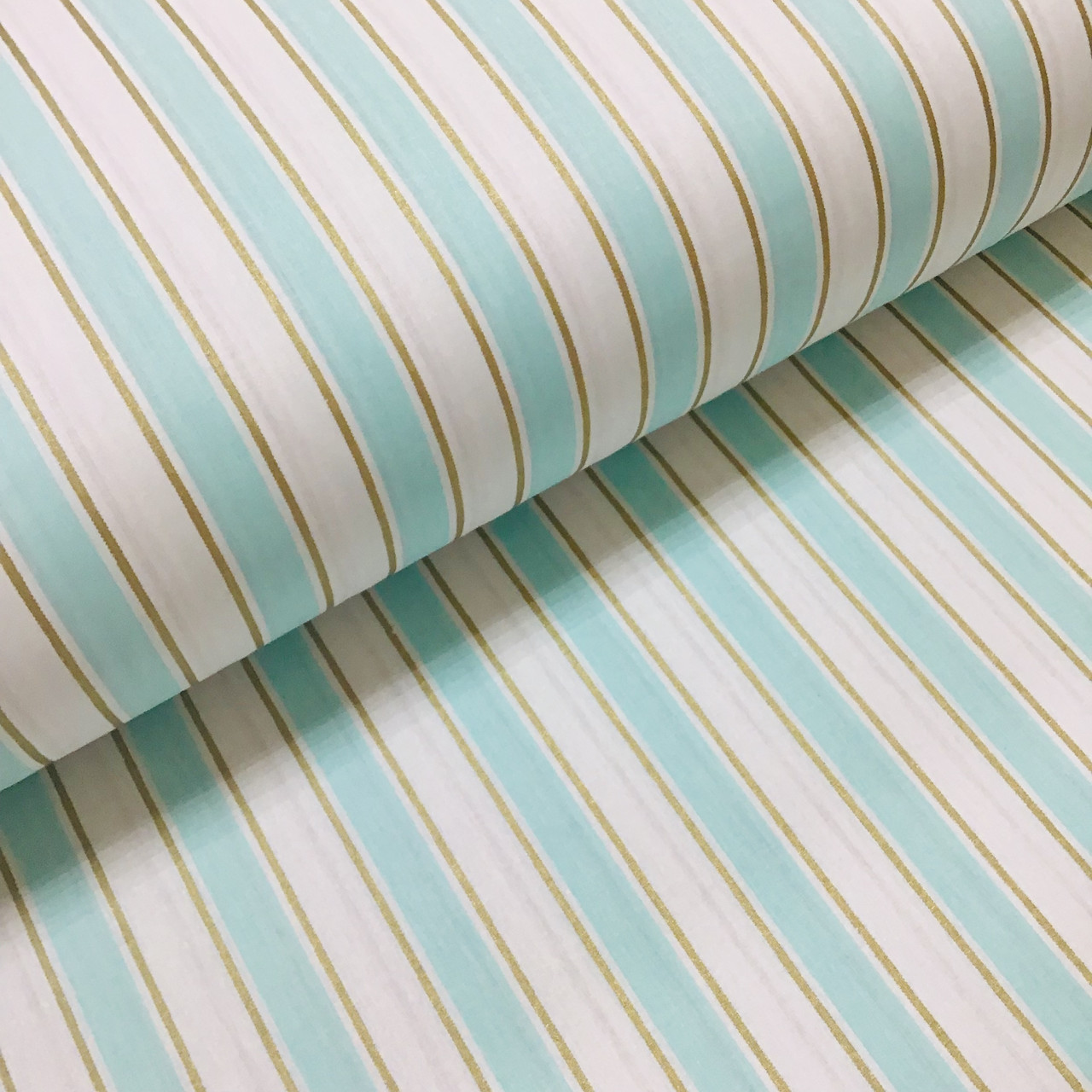 Тканина поплін смужка м'ятна із золотом (глітер) на білому (ТУРЦІЯ шир. 2,4 м) (R-FR-0220)
